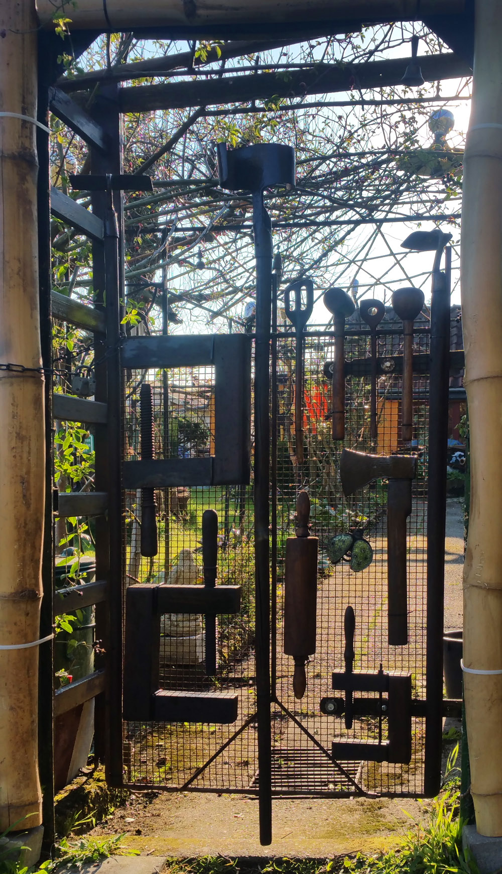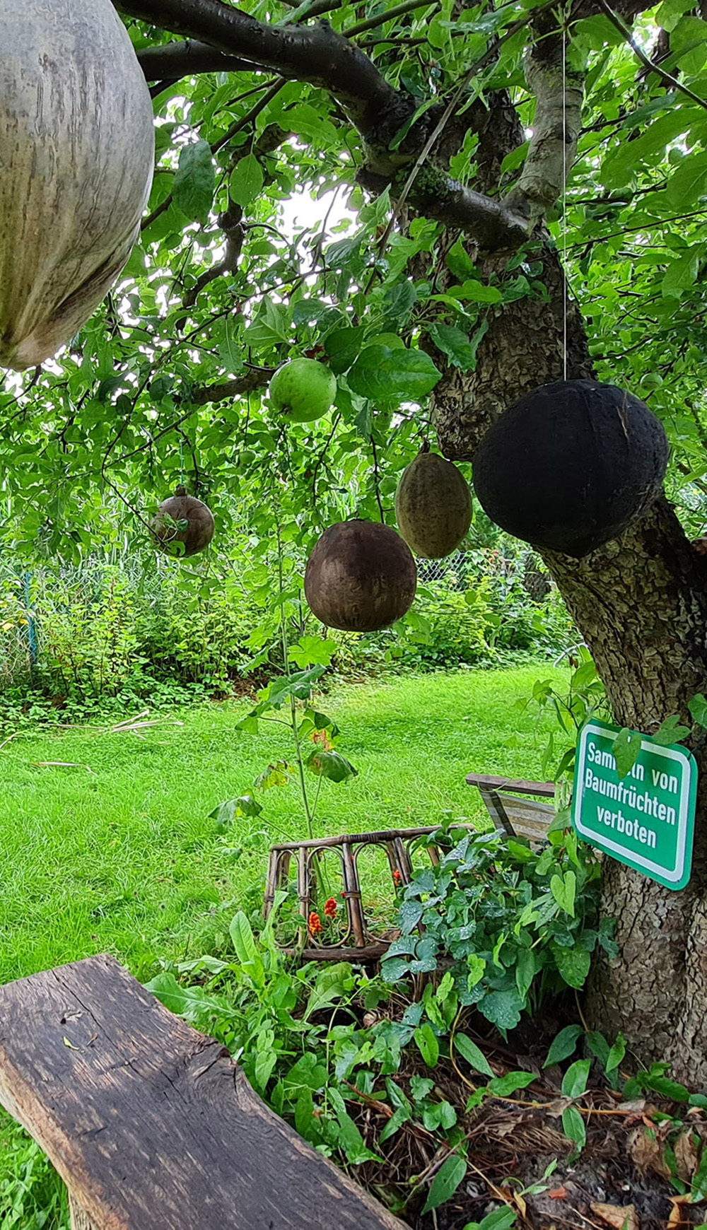 Stephans Garten dient natürlich zuallererst dazu, uns mit frischem Obst und Gemüse zu versorgen. Nebenbei nutzen wir ihn auch als Lager, Werkstatt und Experimentierfeld für unsere Stapeleien und Installationen. Dabei versuchen wir, einen witzigen Dialog von Fundstücken und Natur zu inszenieren, der manchmal erst auf den zweiten Blick zu erfassen ist.